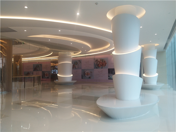 主材高强石膏,玻璃纤维,特殊添加剂。主要用于内装异型定制,特点:塑型强,表面细腻,表面可做各种油漆饰面,脱模时间短,安装便捷,表面可做无缝拼接,A级防火,声学效果好等等。